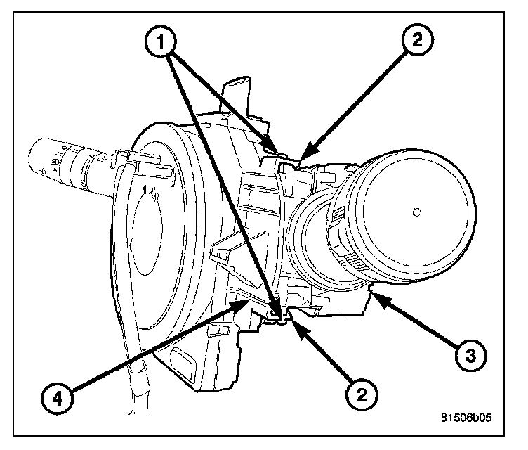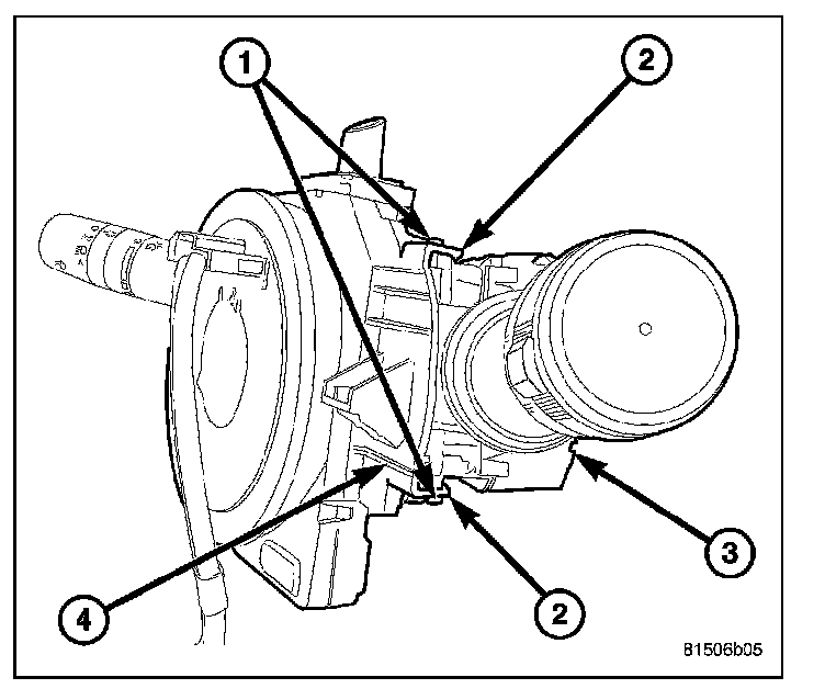 1. Position the right multi-function switch (3) to the back of the Steering Control Module (SCM) and reconnect the switch connector to the SCM.