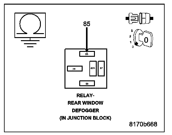 5. JUNCTION BLOCK - REAR WINDOW DEFOGGER RELAY CONTROL SHORT TO GROUND