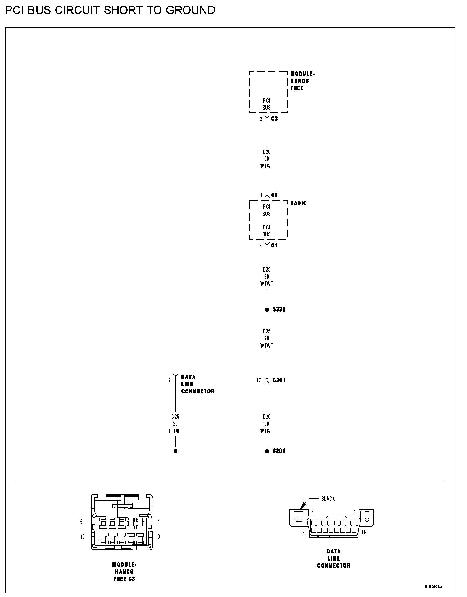 The Hands Free Module detected a short to ground on the (D25) PCI Bus circuit.