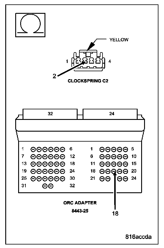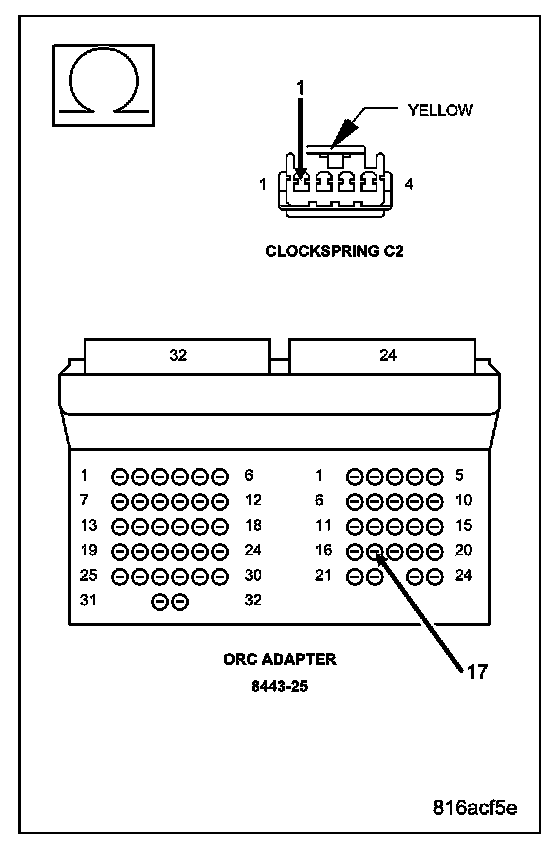 Measure the resistance of the Driver Squib 1 Line 2 circuit between the Clockspring connector and the ORC Load Tool Adaptor.