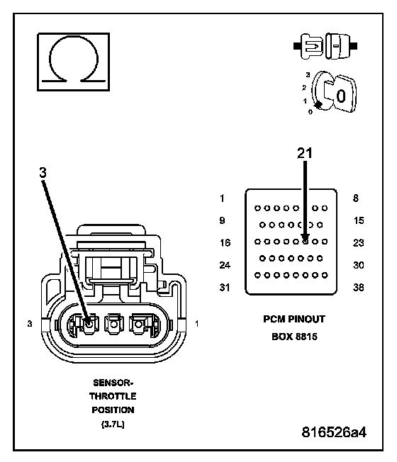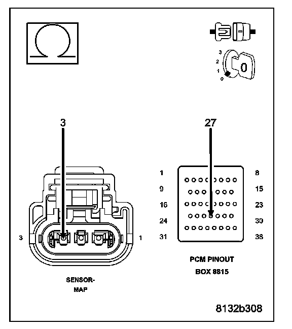 CAUTION: Do not probe the PCM harness connectors. Probing the PCM harness connectors will damage the PCM terminals resulting in poor terminal to pin connection. Install Miller Special Tool #8815 to perform diagnosis.