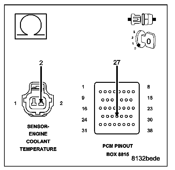 CAUTION: Do not probe the PCM harness connectors. Probing the PCM harness connectors will damage the PCM terminals resulting in poor terminal to pin connection. Install Miller Special Tool #8815 to perform diagnosis.