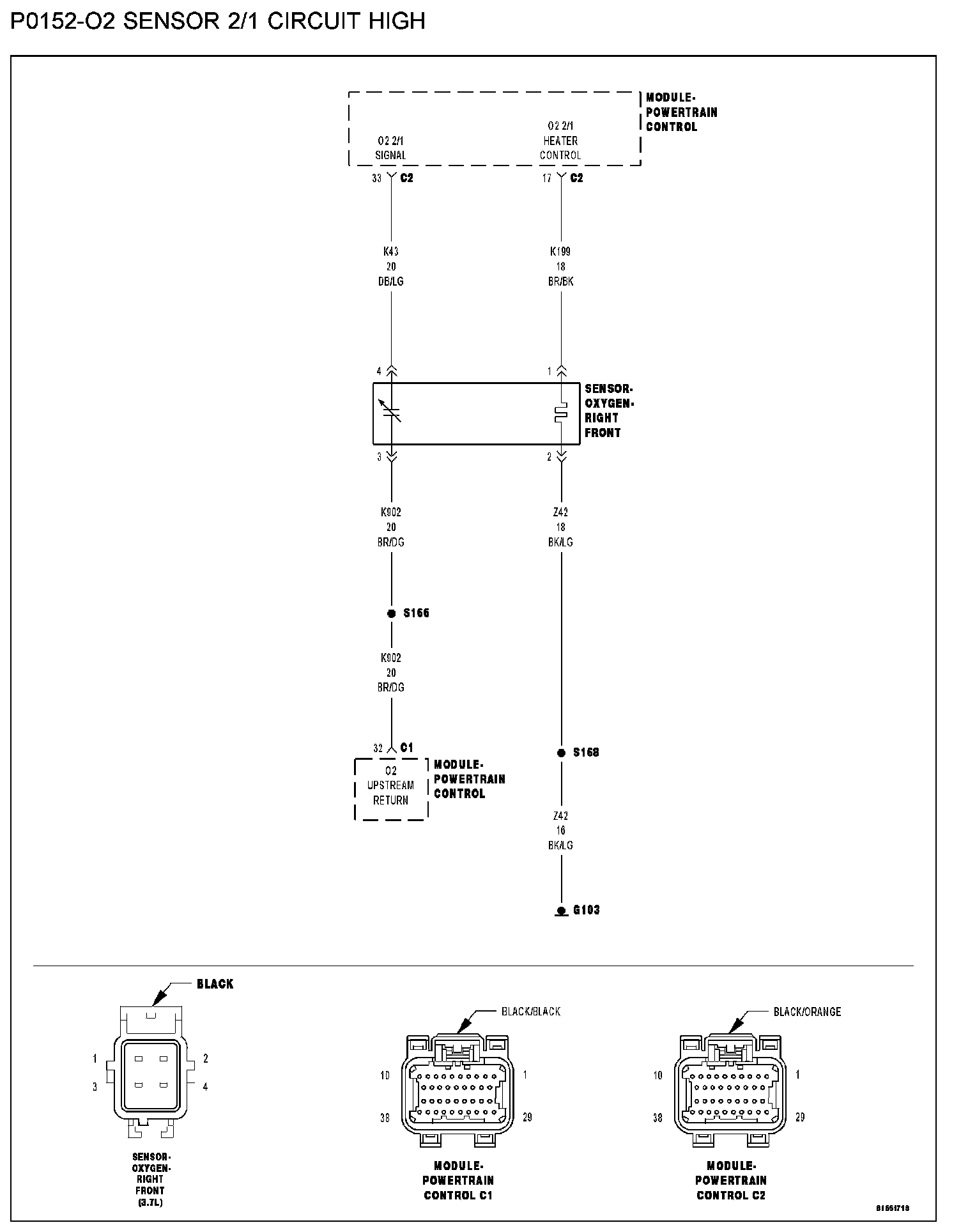- (K43) O2 2/1 signal circuit shorted to battery voltage
