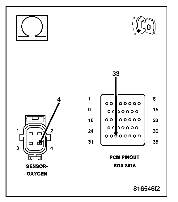 WARNING: DO NOT PROBE THE PCM HARNESS CONNECTORS. PROBING THE PCM HARNESS CONNECTORS WILL DAMAGE THE PCM TERMINALS RESULTING IN POOR TERMINAL TO PIN CONNECTION. INSTALL MILLER SPECIAL TOOL #8815 TO PERFORM DIAGNOSIS.