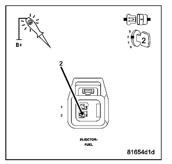 Using a 12-volt test light connected to ground, backprobe the (F142) ASD Relay Output circuit in the No.5 Fuel Injector harness connector.