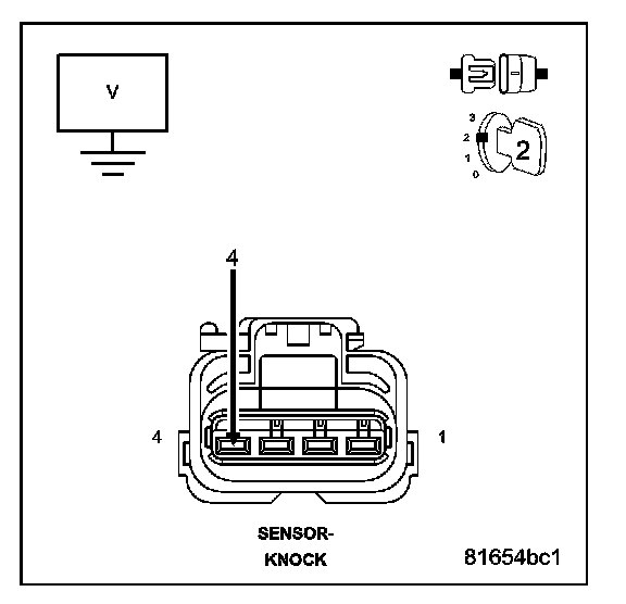 Measure the voltage on the (K242) Knock Sensor No.2 Signal circuit in the Knock Sensor harness connector.