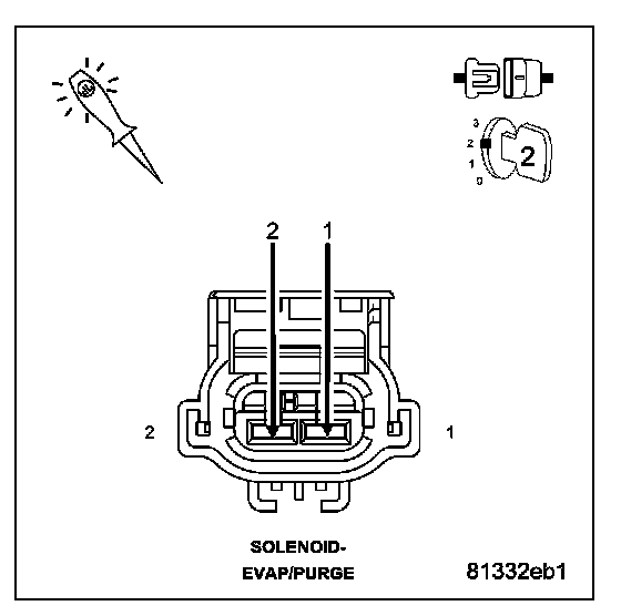 NOTE: After disconnecting the EVAP Purge Solenoid vacuum connections, inspect the lines and solenoid for any signs of contamination from the EVAP Canister. This may indicate a faulty check valve. Replace/repair as necessary.