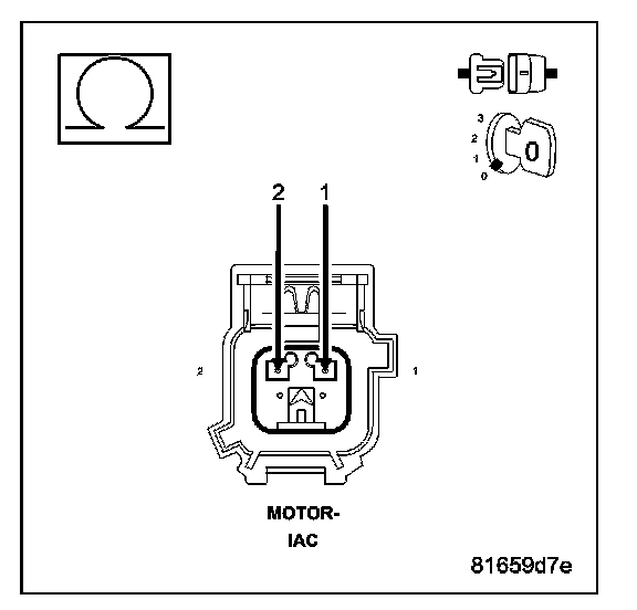 Measure the resistance across the (K961) IAC Signal circuit and the (K61) IAC Control circuit in the IAC Motor harness connector.