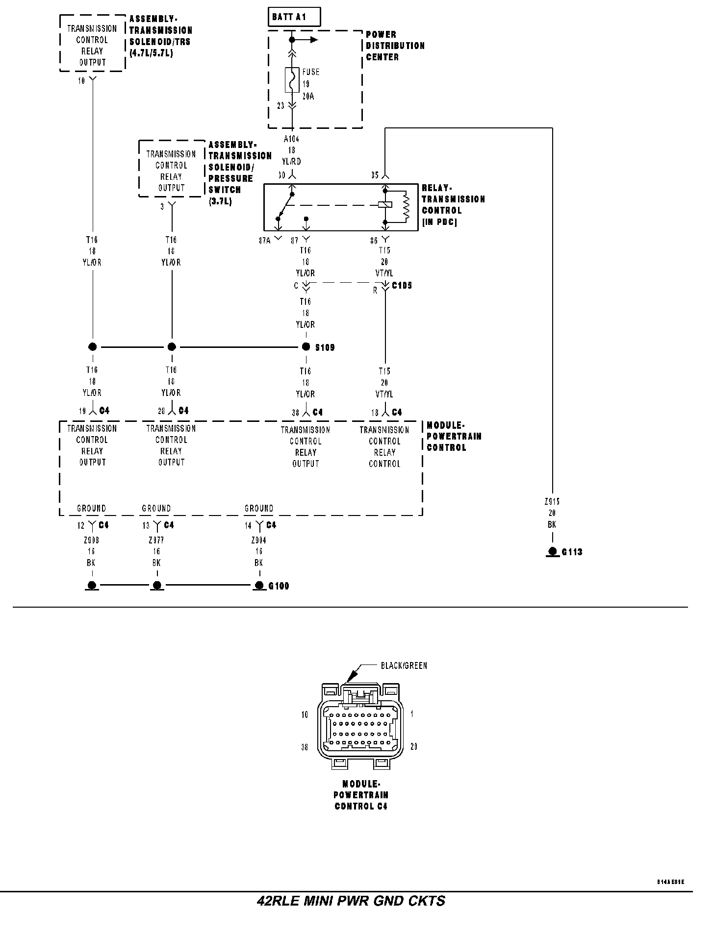 Yes >> Replace the Transmission Control Relay. Perform 42RLE TRANSMISSION VERIFICATION TEST - VER 1. Transmission Verification Test