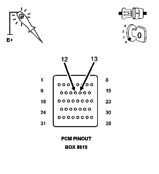 CAUTION: Do not probe the PCM harness connectors. Probing the PCM harness connectors will damage the PCM terminals resulting in poor terminal to pin connection. Install Miller tool #8815 to perform diagnosis.