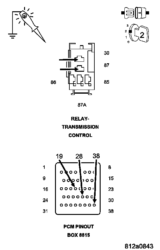 Turn the ignition off to the lock position. Remove the Transmission Control Relay Ignition on, engine not running.