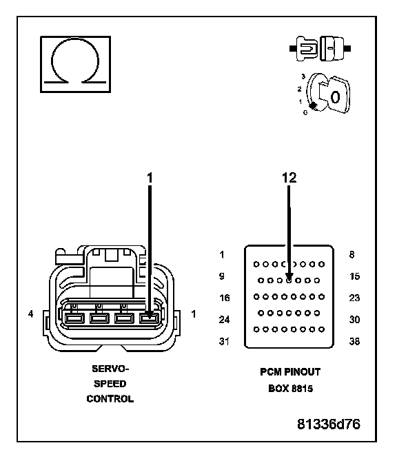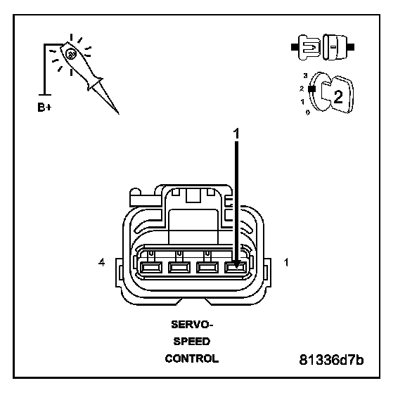 Measure the resistance of the (V36) S/C Vacuum Control in the Speed Control Servo harness connector to the appropriate terminal of special tool #8815.