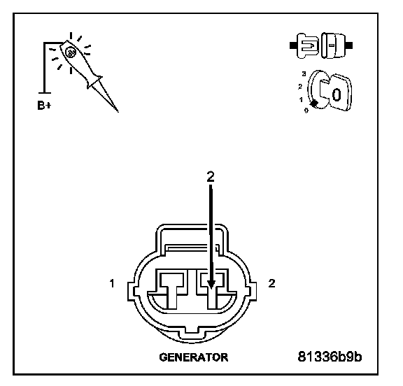 Using a 12-volt test light, jump it across the Generator Field harness connector.