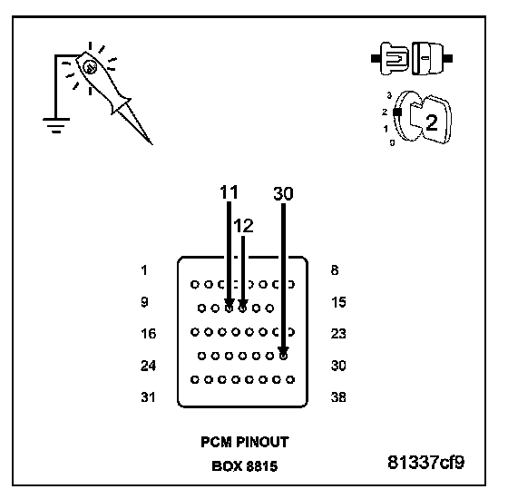 CAUTION: Do not probe the PCM harness connectors. Probing the PCM harness connectors will damage the PCM terminals resulting in poor terminal to pin connection. Install Miller Special Tool #8815 to perform diagnosis.