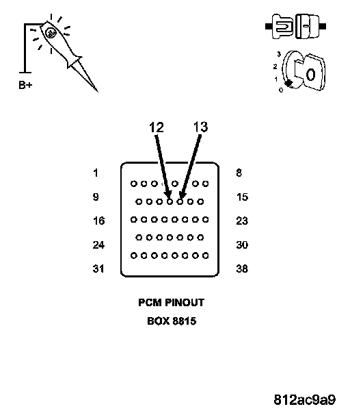 CAUTION: Do not probe the PCM harness connectors. Probing the PCM harness connectors will damage the PCM terminals resulting in poor terminal to pin connection. Install Miller Special Tool #8815 to perform diagnosis.