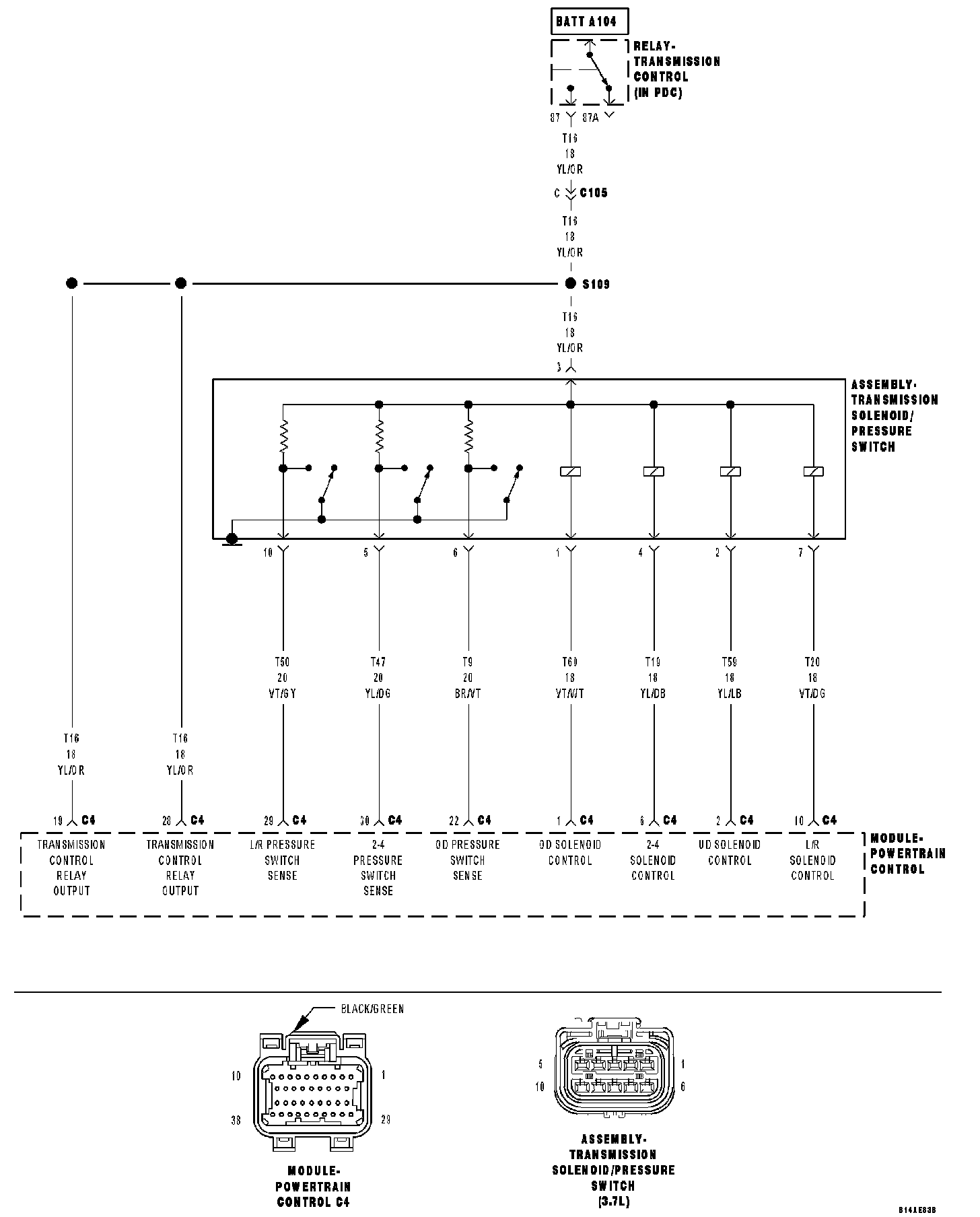Disconnect the PCM C4 harness connector. Remove the Transmission Control Relay