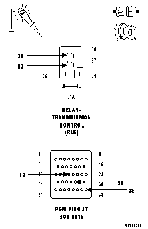 NOTE: The jumper wire must still be in place in the Transmission Control Relay connector.
