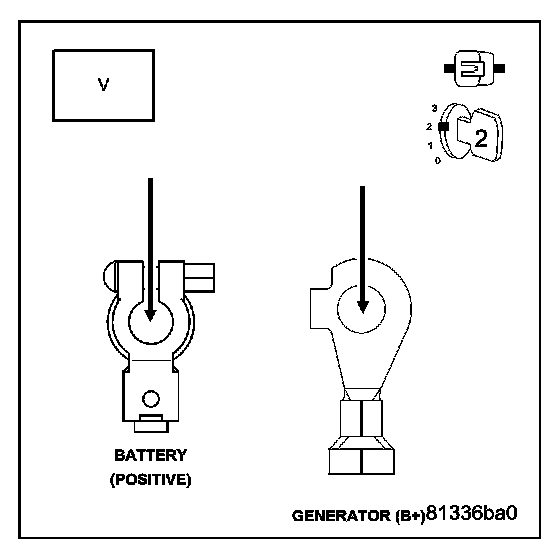 Measure the voltage between the Generator B+ Output Terminal and the Battery+ Post.