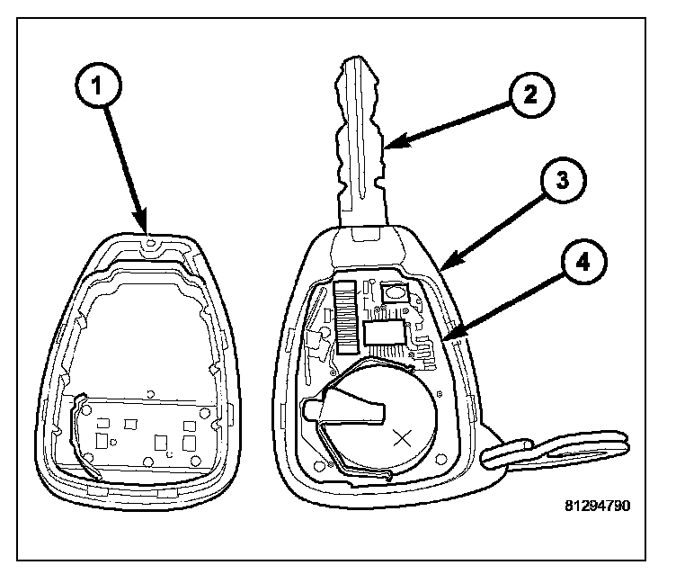 The Sentry Key transponder cannot be adjusted or repaired. If inoperative or damaged, the entire key and RKE transmitter unit must be replaced.