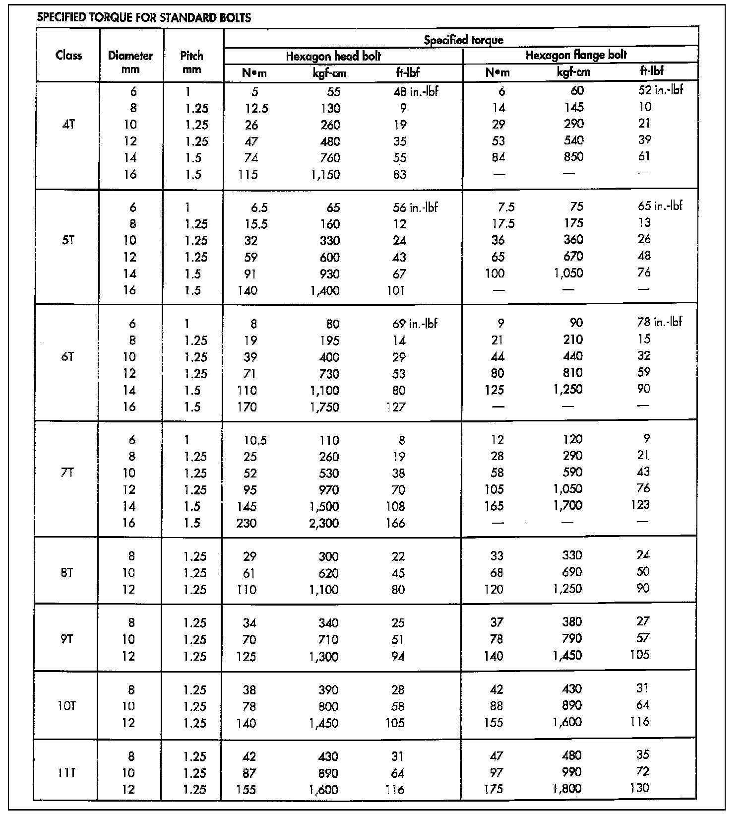 Individual Torque Charts appear within many or the Groups. Refer to the Standard Torque Specifications Chart for torque references not listed in the individual torque charts.