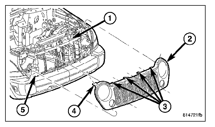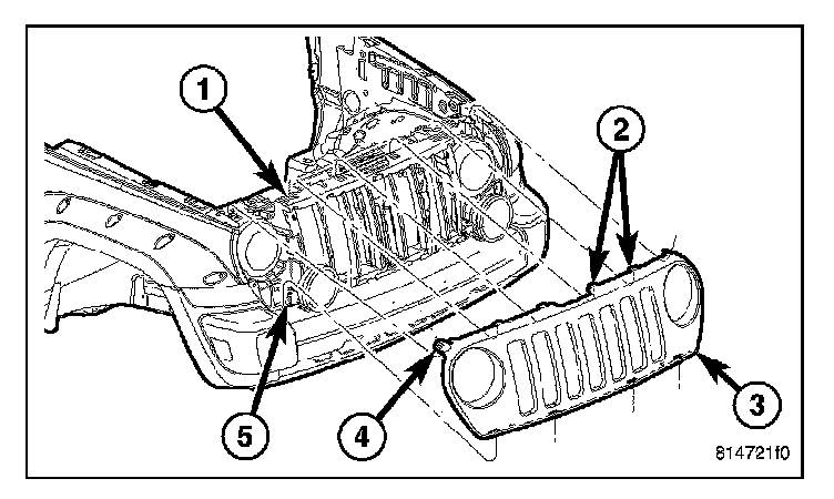 NOTE: The procedure to install the Renegade grille (3) is similar to the standard grille shown.