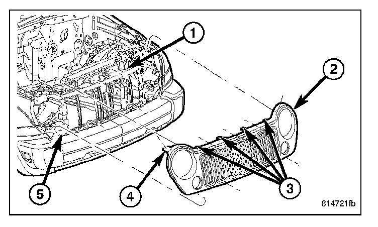 NOTE: The procedure to remove the Renegade grille (3) is similar to the standard grille shown above.