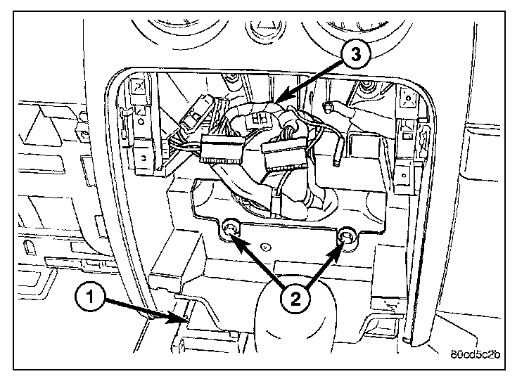 11. Install the HVAC mounting bolt at the lower outside corner of the glove box opening and tighten to 6 N.m (55 in. lbs.).