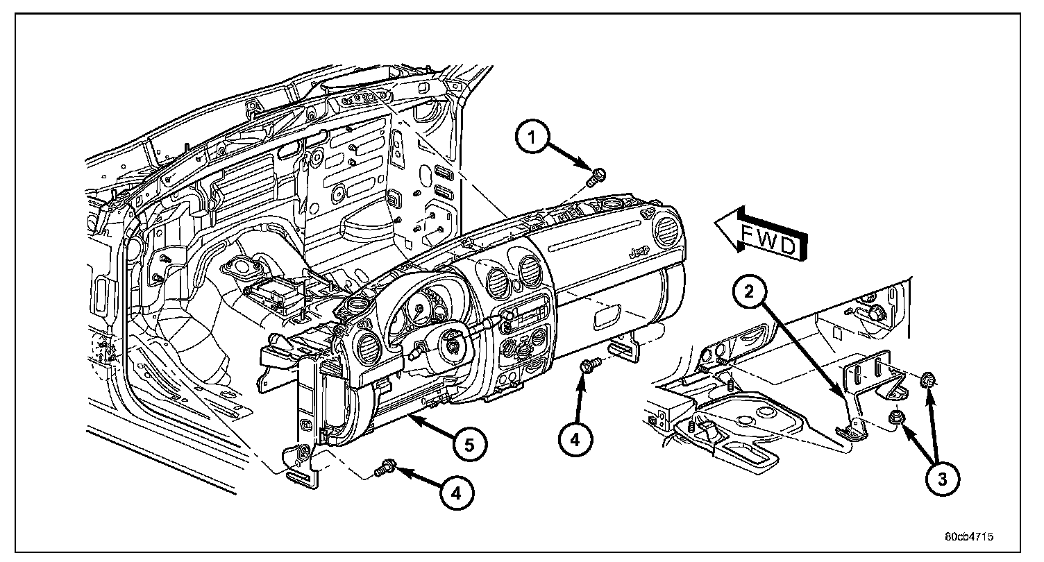 5. Install the four bolts at the top of the instrument panel connecting to the cowl front panel and tighten to 28 N.m (21 ft. lbs.)