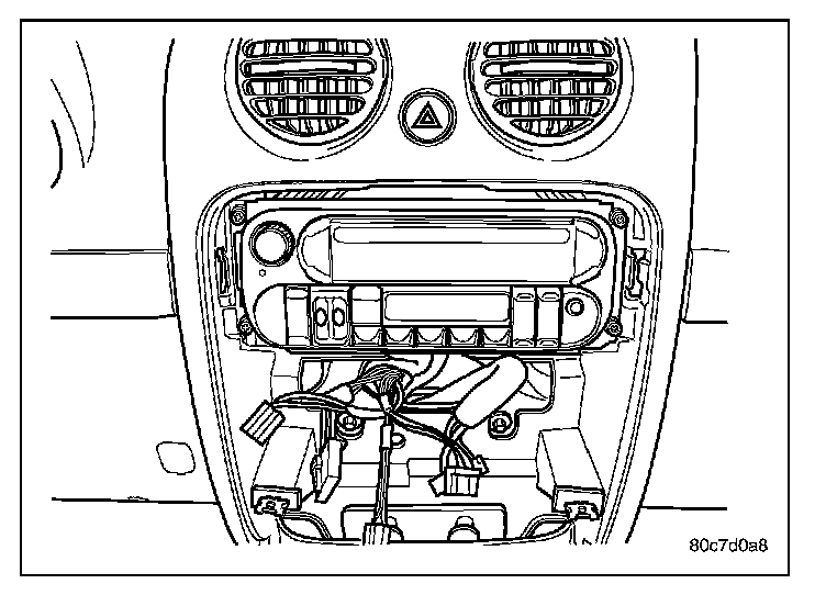 4. Position the radio wire harness and seat the push pin fastener.