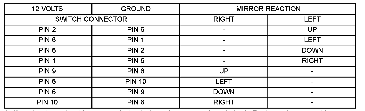 - Refer to the Mirror Motor Test Chart for proper wire connections at the switch connector