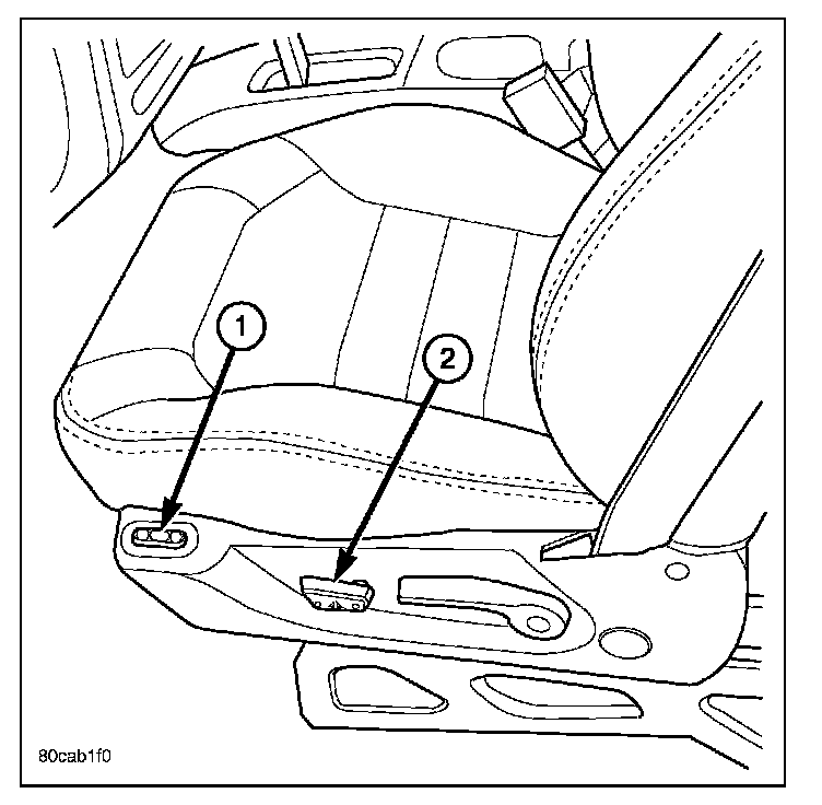 Individually controlled, electrically powered front seats are available as factory-installed equipment on this model. Vehicles with this option can be visually identified by the power seat switches (2), mounted on each of the front seat cushion side shields. The power seat system option allows the front seating positions to be electrically adjusted for optimum vehicle control and comfort. The power seat cushion can be adjusted forward, rearward, front up, front down, rear up, or rear down. The power seat system for this vehicle includes the following major components: