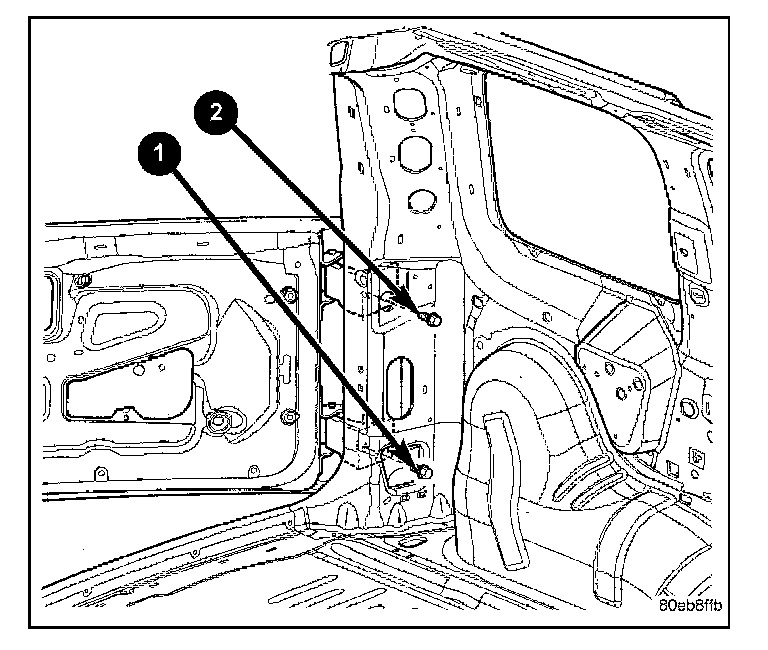 3. Remove the bolts (1) from inside the quarter panel.