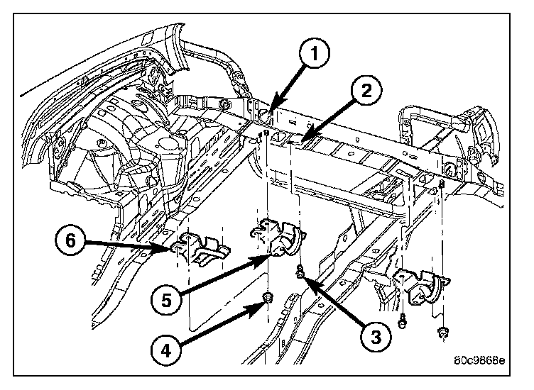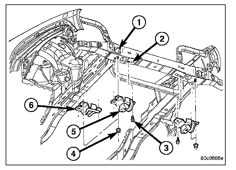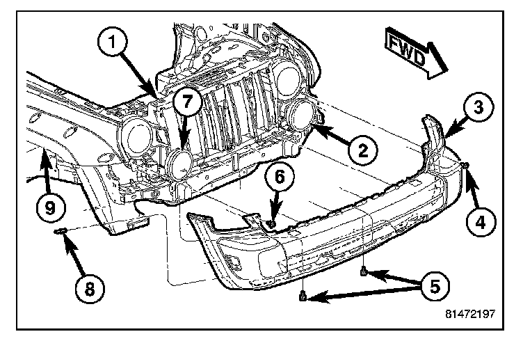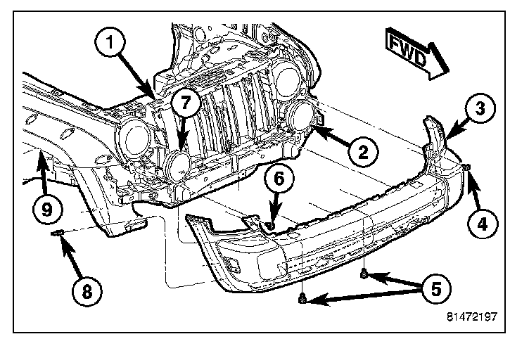 NOTE: Front fascia must be removed to replace the stud plate. Refer to Front Bumper.