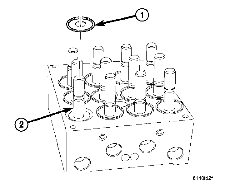 2. If the seals on the components are not new, they must be replaced. Each of the solenoid valve stem seals (1) must be replaced do not reuse solenoid valve stem seals.