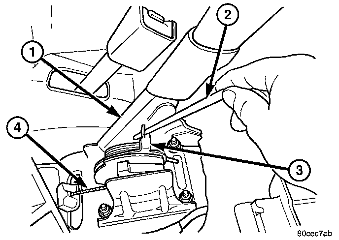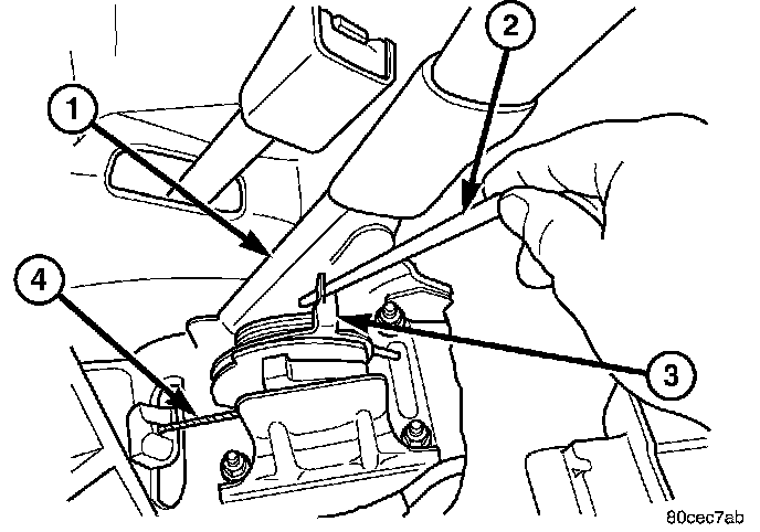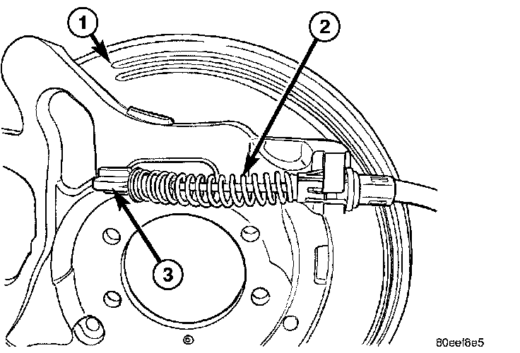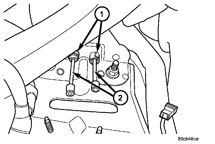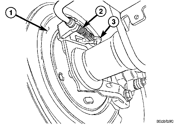 6. Remove the cable from the axle bracket with a proper sized box end wrench over the tangs (1).