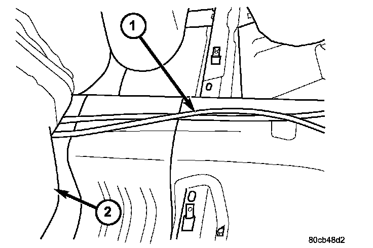 3. Push the cables (2) thru the floor and seat the tangs (1).