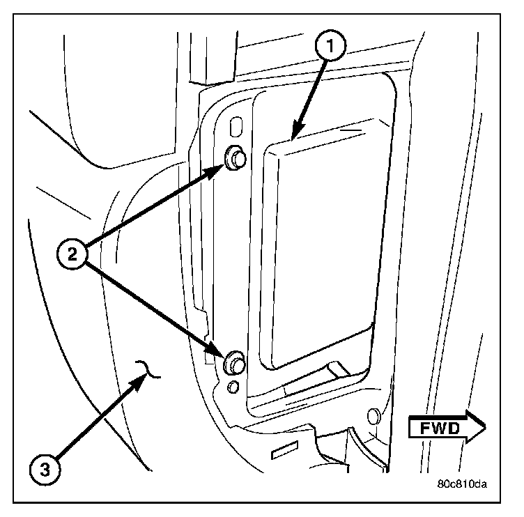 The reservoir (1) is located behind, and at the outer end of the instrument panel. To gain access for testing or removal, remove glovebox assembly. Also remove fuse box access cover panel at end of instrument panel. On vehicles equipped with LHD (Left Hand Drive), this fuse access panel is located at right end of instrument panel. On vehicles equipped with RHD (Right Hand Drive), this access panel is located at left end of instrument panel.