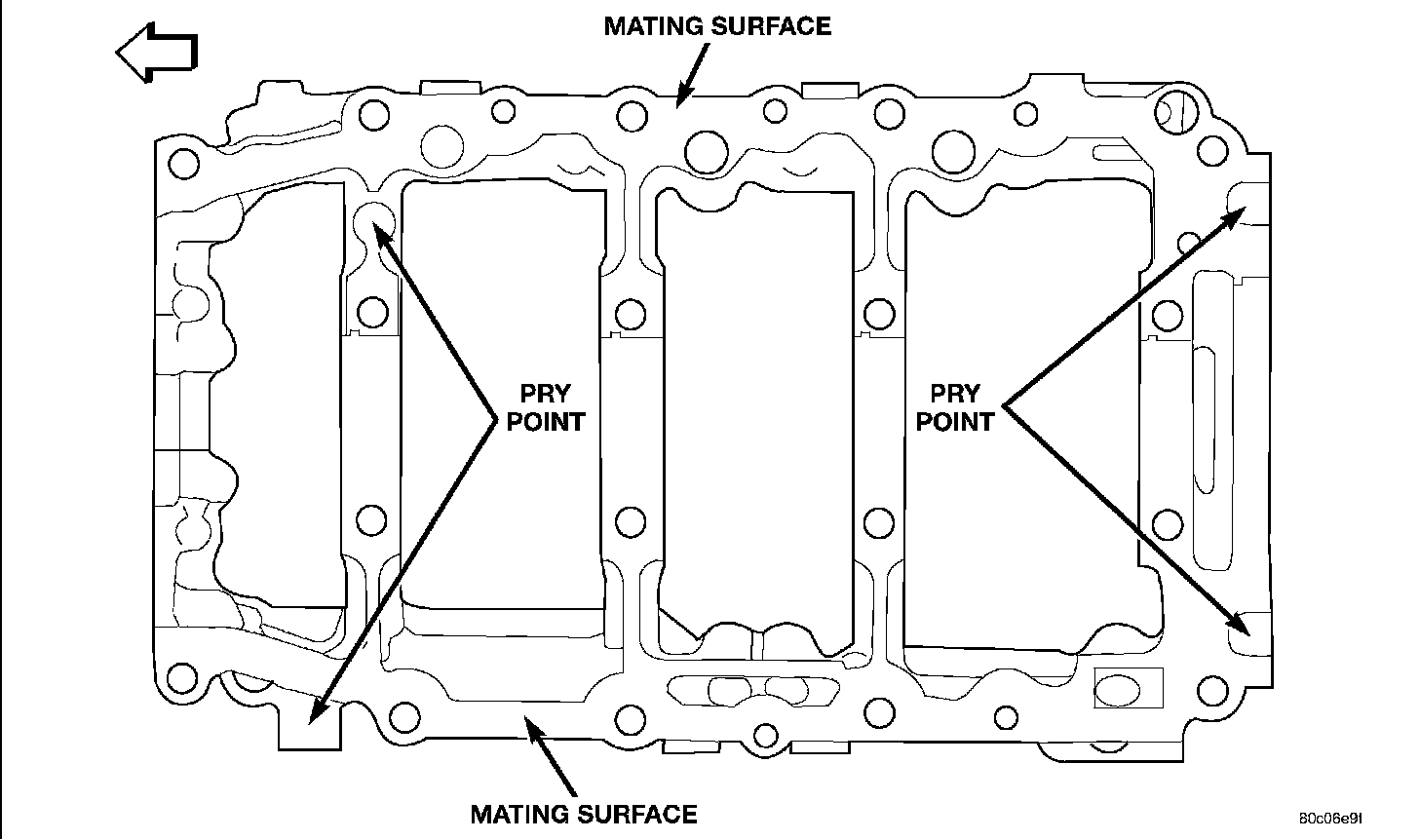 CAUTION: The bedplate to cylinder block mating surface must be coated with Mopar Engine RTV sealant prior to installation. Failure to do so will cause severe oil leaks.