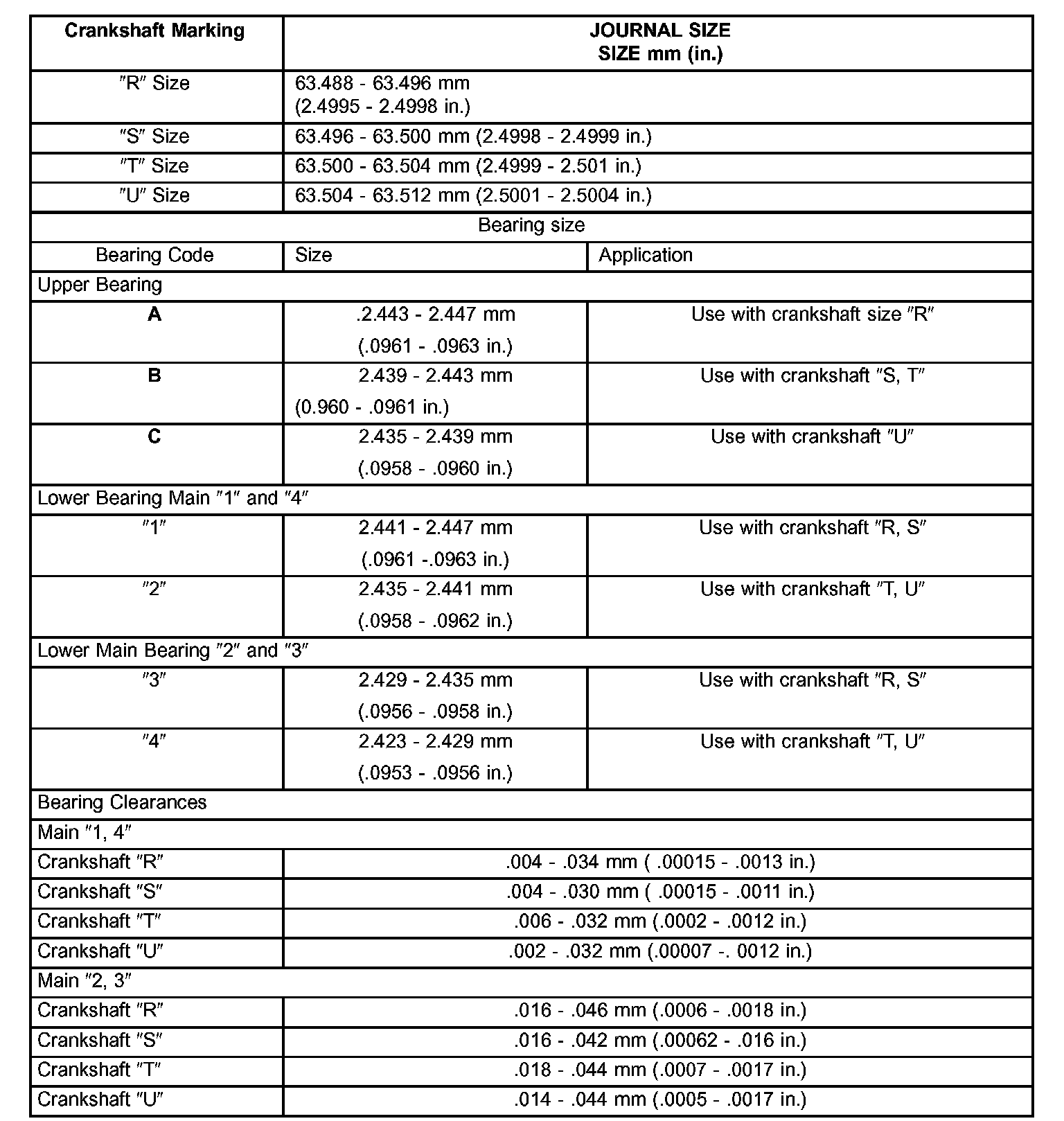 Main Bearing Journal Diameter 63.488 - 63.512 mm (2.4996 - 2.5005 inch)