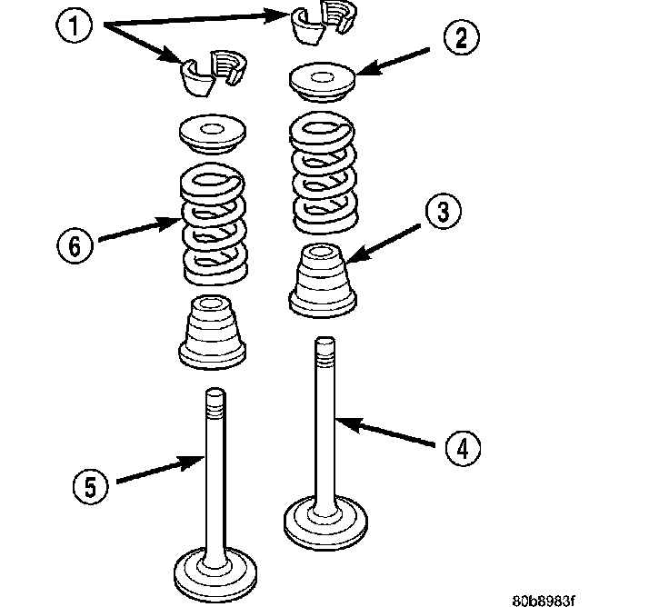 NOTE: When refacing valves (4) and valve seats, it is important that the correct size valve guide pilot be used for reseating stones. A true and complete surface must be obtained.