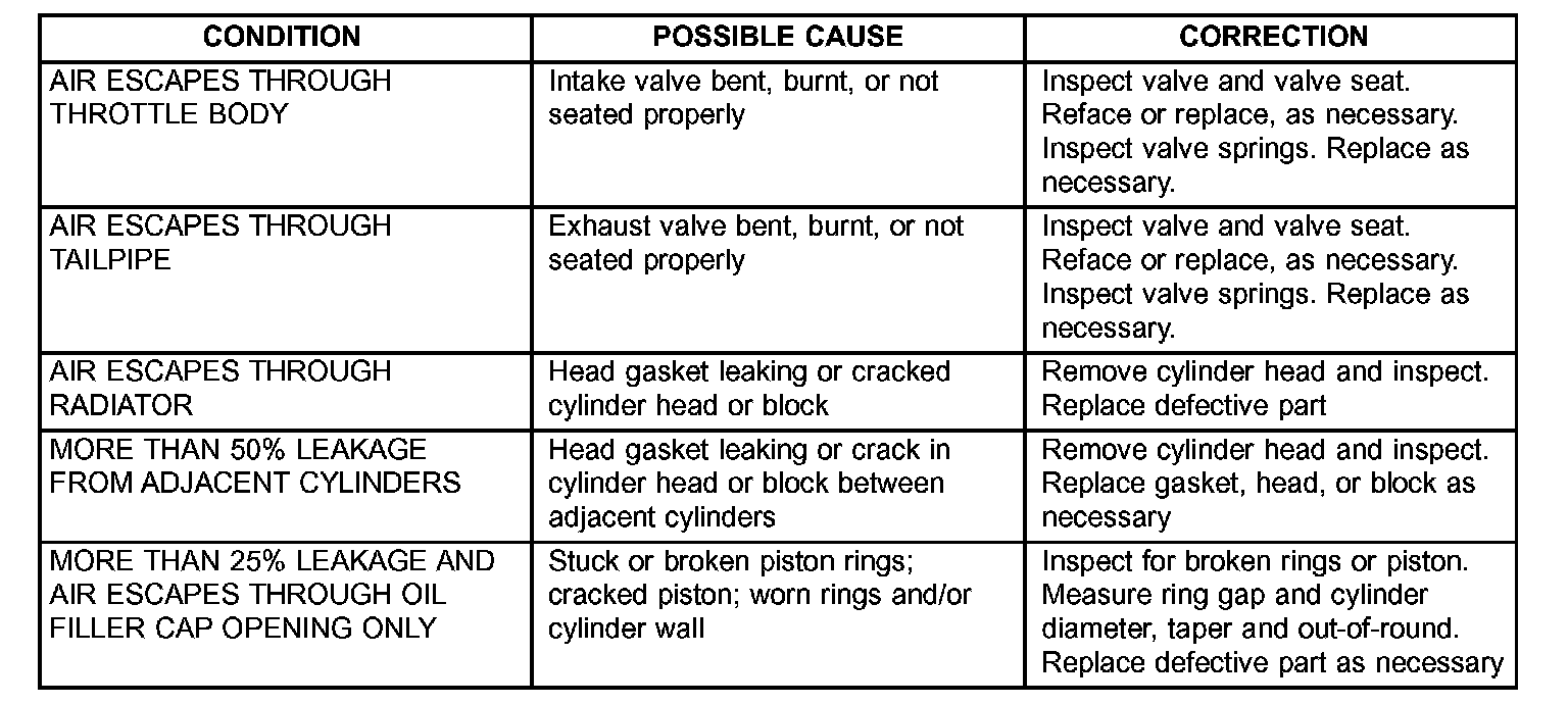 CYLINDER COMBUSTION PRESSURE LEAKAGEThe combustion pressure leakage test provides an accurate means for determining engine condition.