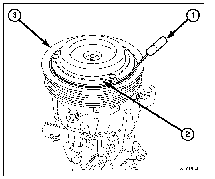 NOTE: A distinct change of sound during the clutch pulley tapping process indicates that the pulley and bearing assembly has bottomed out against the compressor housing.