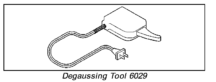 A degaussing tool (Special Tool 6029) is used to demagnetize, or degauss, the overhead console forward mounting screw and the roof panel above the overhead console. Equivalent units must be rated as continuous duty for 110/ 115 volts and 60 Hz. They must also have a field strength of over 350 gauss at 7 millimeters (0.25 inch) beyond the tip of the probe.