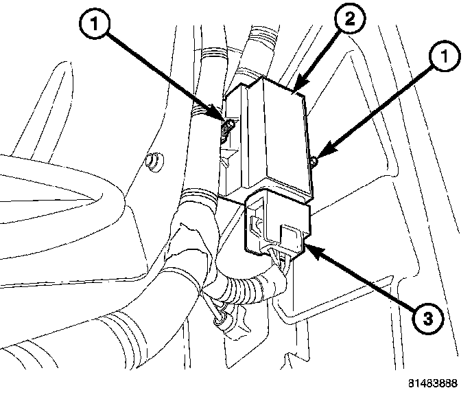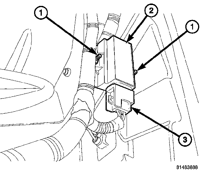 4. Disconnect the electrical connector (3) and remove the transponder (2) from the vehicle.