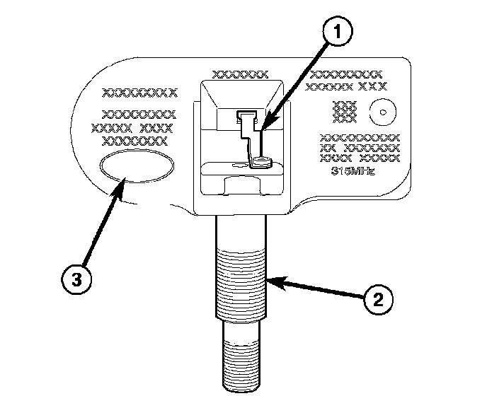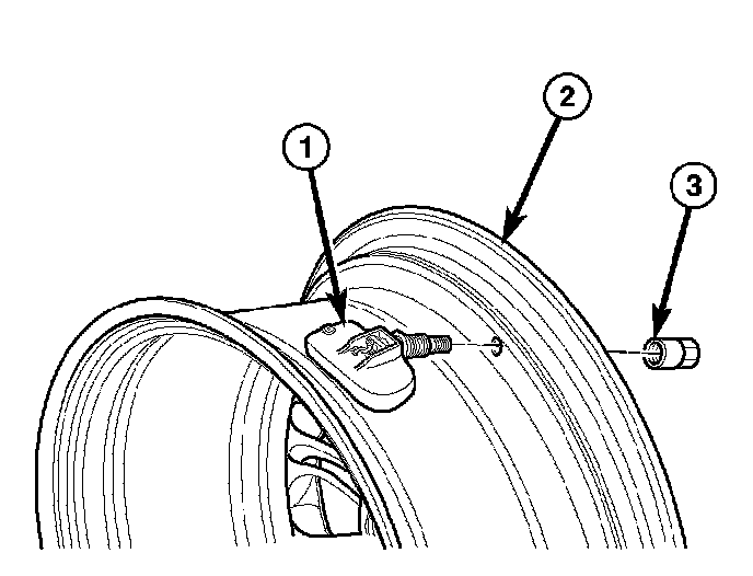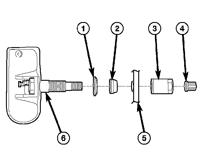 NOTE: Before reinstalling an existing tire pressure sensor, replace seal (2) and metal washer (1) at base of sensor valve stem (6) to ensure proper sealing.