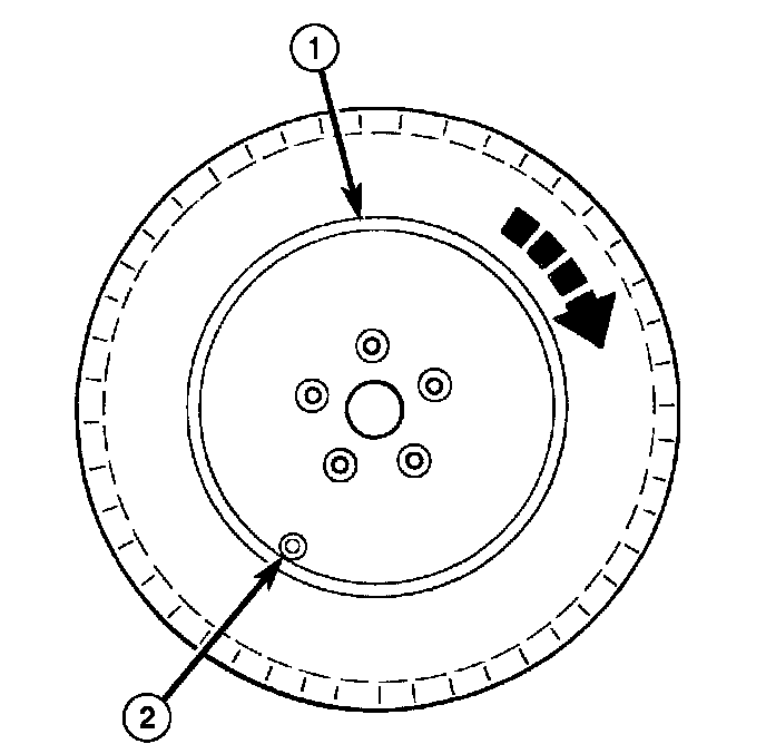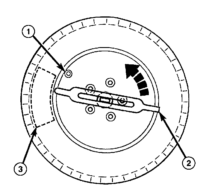 NOTE: Before tightening sensor nut, push downward on sensor housing (2) in an attempt to make it flush with interior contour of wheel (1).