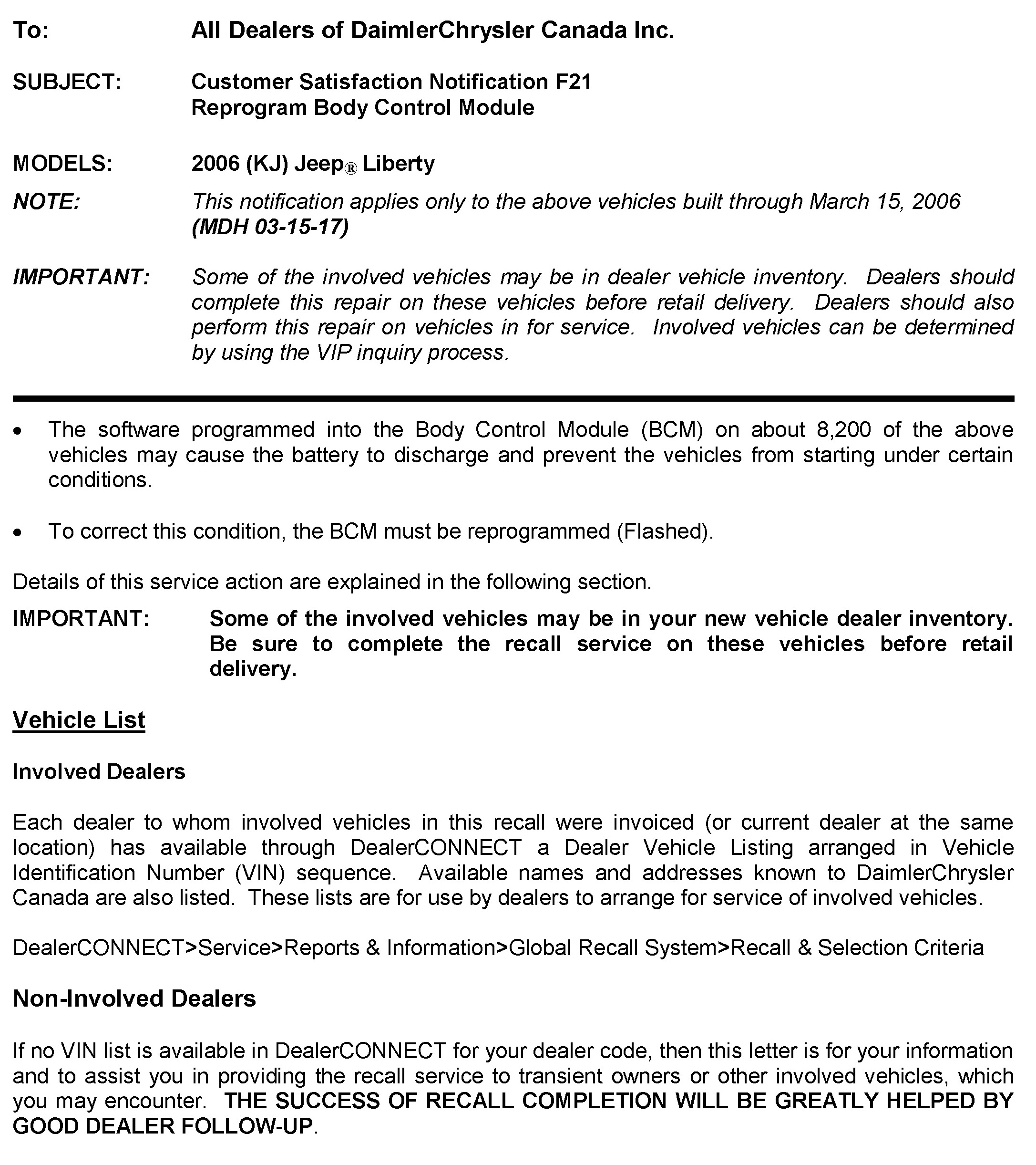This notification applies only to the above vehicles built through March 15, 2006 (MDH 03-15-17)