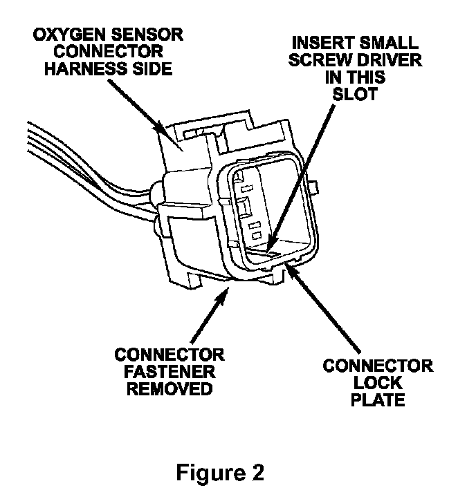 6. Using a small screw driver, remove the lock plate from the oxygen sensor connector. (Figure 2)