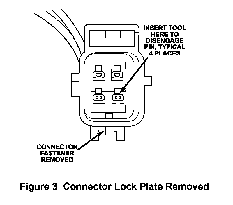 7. Remove the four wire terminals from the 4-way connector by disengaging the latch for each wire terminal, then pulling back on the wire. (Figure 3).