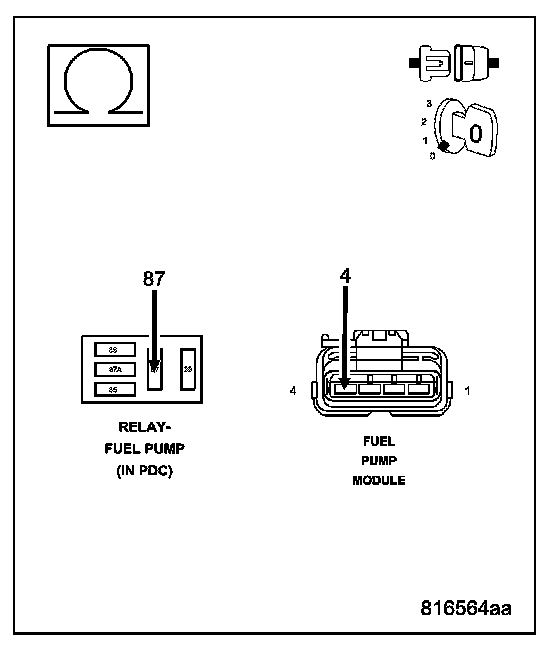 NOTE: It may be necessary to use a mechanics stethoscope in the next step. Listen for fuel pump operation at the fuel tank.
